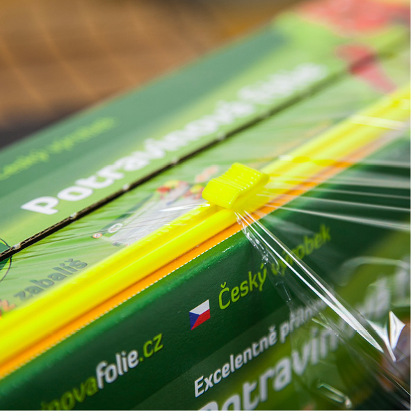 Kvalitní potravinová fólie s funkční řezačkou, která usnadňuje balení a uchovávání potravin, ideální pro každodenní použití.